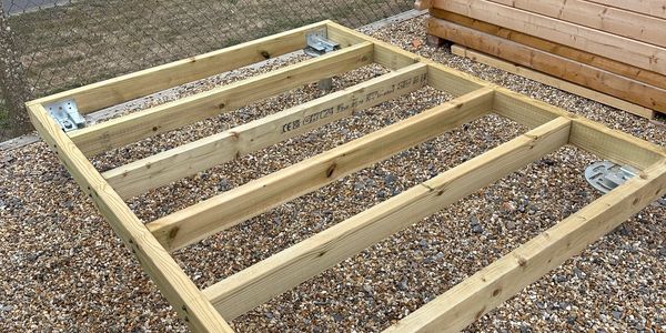 For garden buildings once the screws are installed, a timber frame base is then installed to locate the building onto.